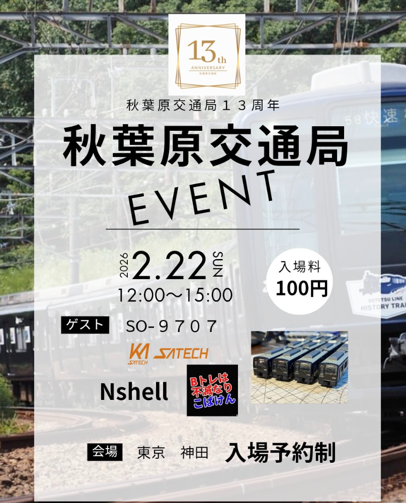 2026年2/22秋葉原交通局出展者様@MiniunitStrage(決定)@Satew00t(決定)@SO_N_B_9707(決定)@KOBAKEN_TETSUDO(決定)@SecRap_01 (追加)入場予約開始しています。